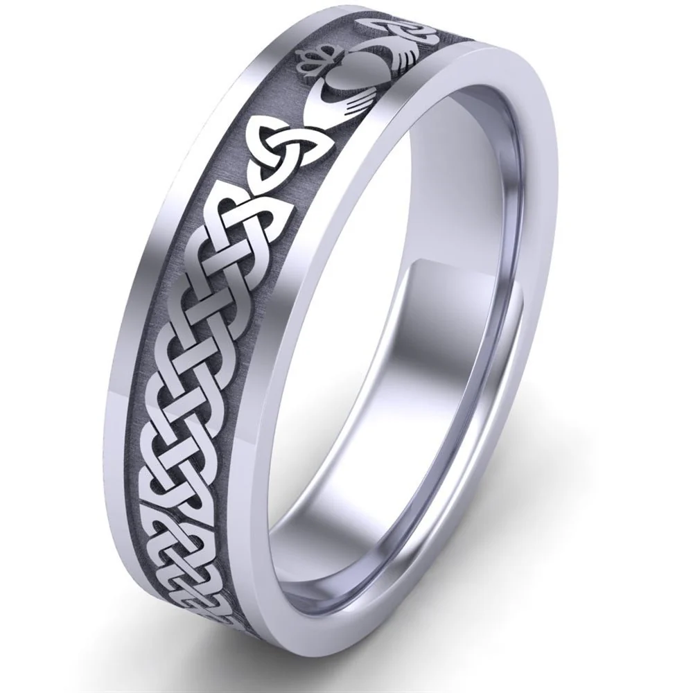 14K White Gold Claddagh Wedding Ring UCL1-14W6MFLAT