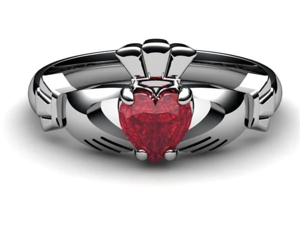 14K White Gold RUBY Claddagh Ring.