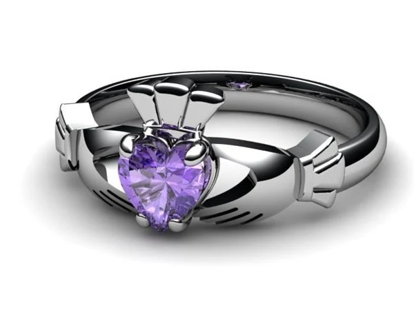 Perfectly polished, excellent quality, nice looking claddagh ring. Featuring a 5X5 mm lab created TANZANITE.